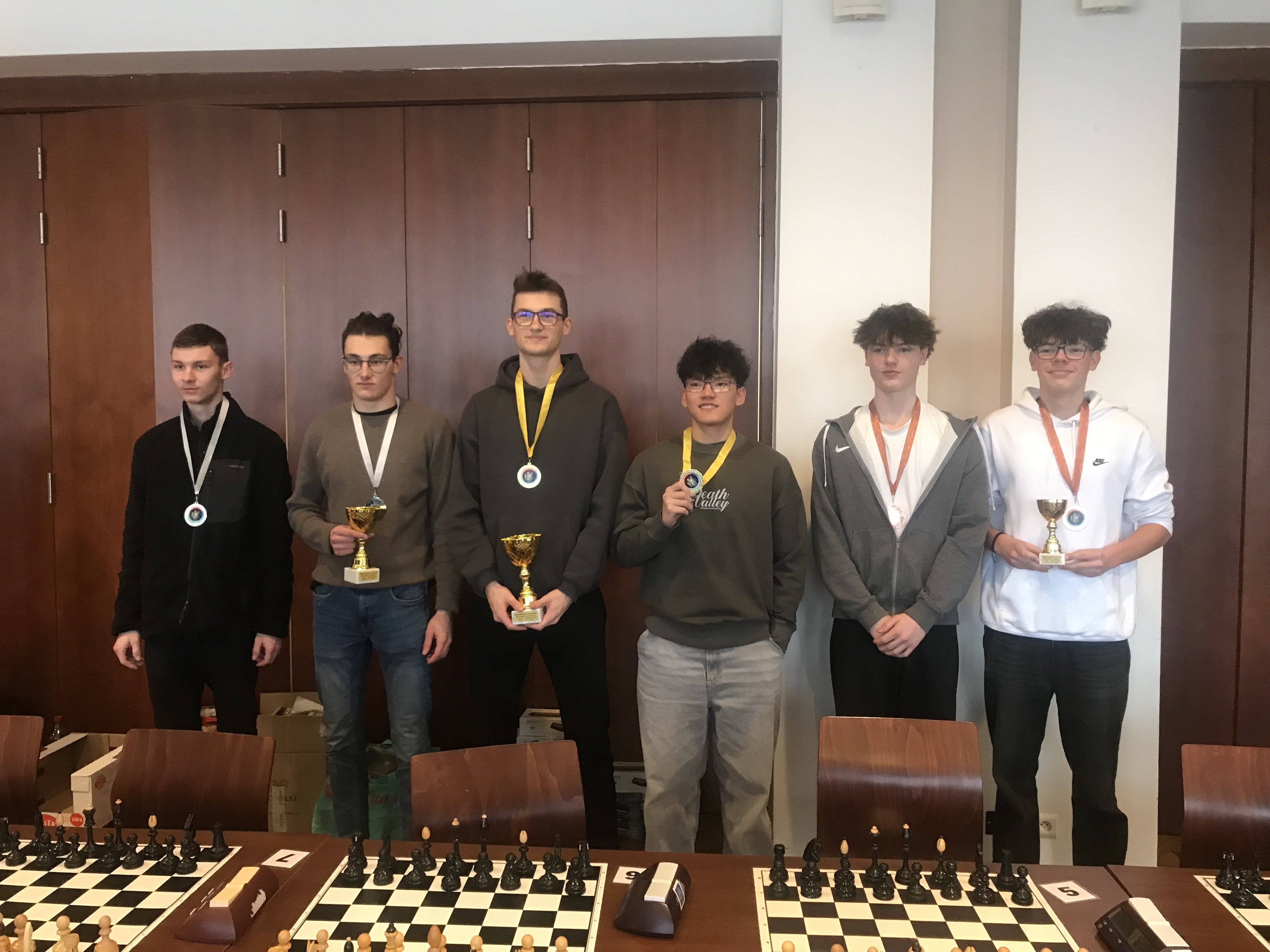 Vložil uživatel Trávníček Stanislav dne 6 Únor, 2026 - 10:17.Ve středu 4. 2. se v Písku konal první ročník Šachového turnaje dvojčlenných družstev, který pořádal pro základní a střední školy Chess Club Písek. Do soutěže se s chutí zapojili příznivci šachu naší školy a v sedmikolovém turnaji sehráli partie s dalšími účastníky soutěže. V kategorii II. (6. - 9. třída) zvítězili Petr Arnican a Adam Chlanda, v kategorii III. (SŠ) zvítězili Matěj Záluský a Nguyen Hoang Phuc.