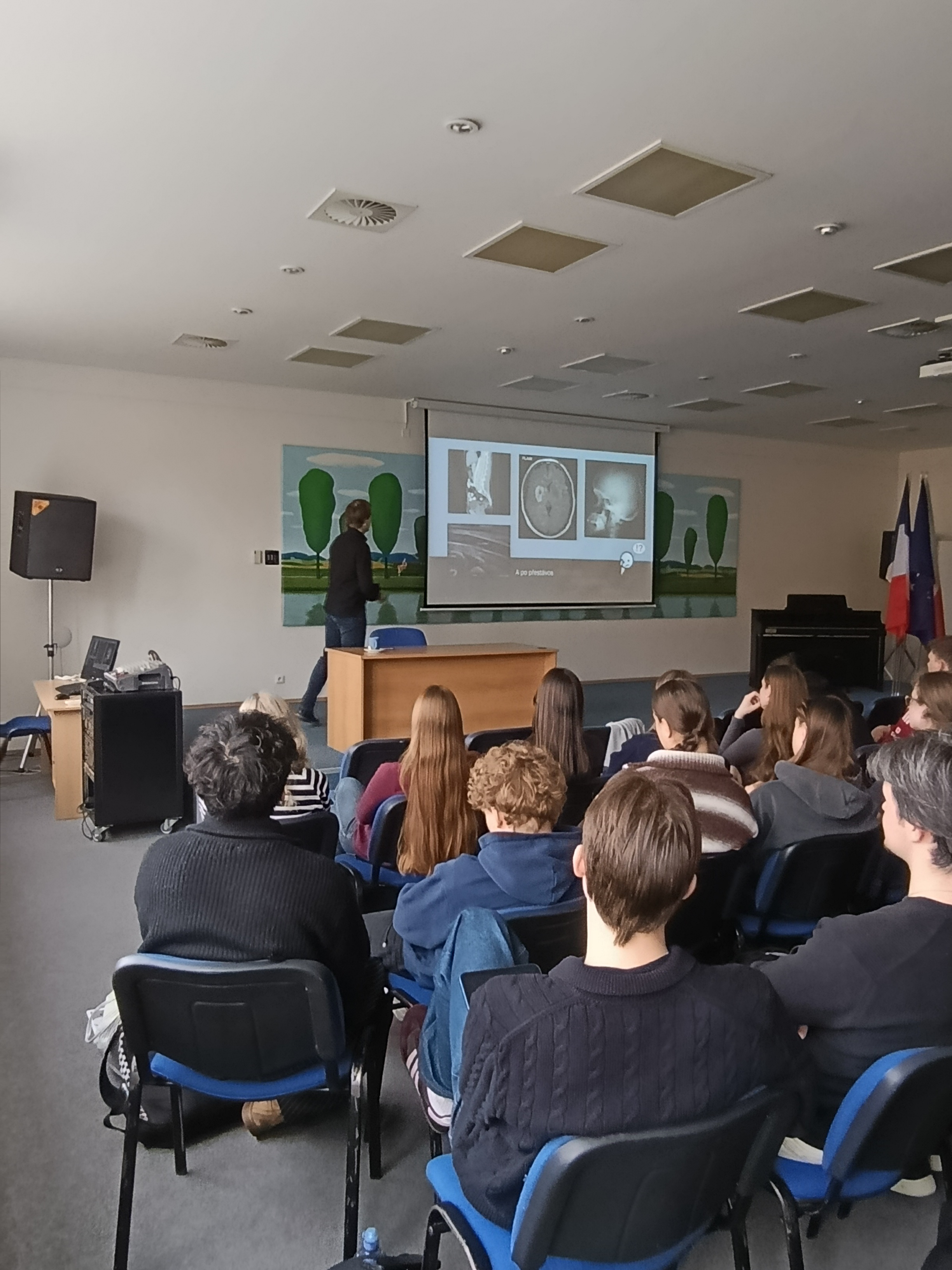 Včera naši školu navštívil neurolog z táborské nemocnice MUDr. Václav Hovorka, který pro studenty připravil zajímavou a poutavou přednášku o oboru neurologie. Přiblížil nám, čím se neurologie zabývá, a ukázal, jak důležitou roli hraje při diagnostice a léčbě onemocnění nervové soustavy.