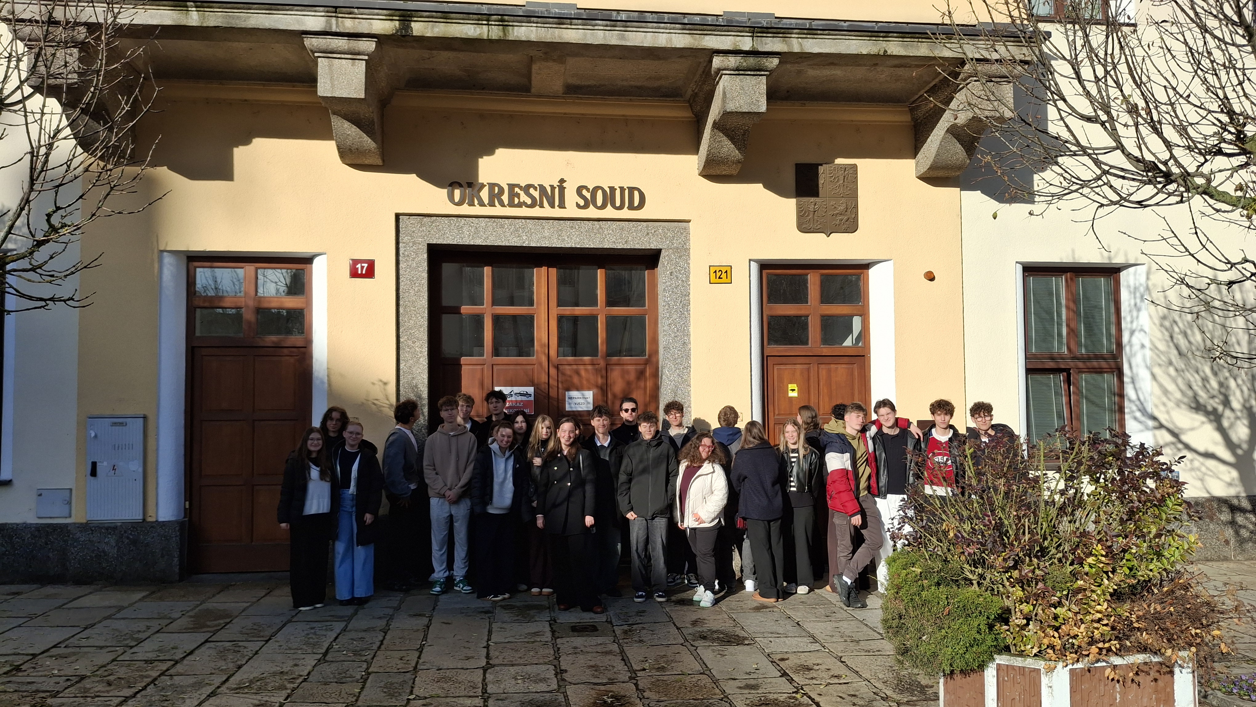 Otázka za dva bludišťáky: Jak co nejlépe strávit dvě vyučovací hodiny Základů společenských věd (ZSV) ve 3. ročníku? Aktivním pobytem u Okresního soudu v Písku. Dobrovolníci z řad studentů 3.B zde byli v rámci exkurze nejprve poctivě pozavíráni do místností v přízemí budovy nazývané „eskorty“. Následně byli vystaveni nepříjemné realitě trestního soudnictví, a to s jedním konkrétním cílem – posílení právního vědomí.