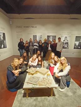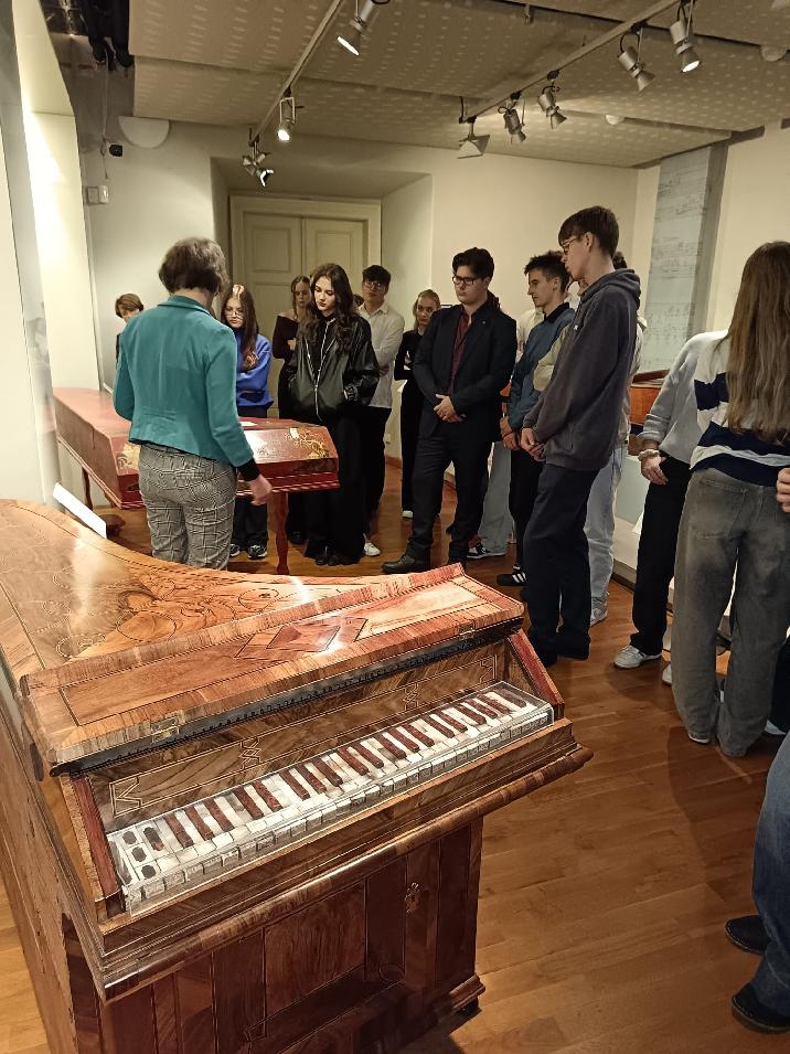 Po prohlídce výstavy jsme si prošli i stálou expozici hudebních nástrojů, kde byly k vidění historické i moderní nástroje. Zvláštním zpestřením se stala chvíle, kdy jeden ze studentů objevil první prototyp kytary značky Resonet, kterou kdysi vytvořil jeho dědeček.